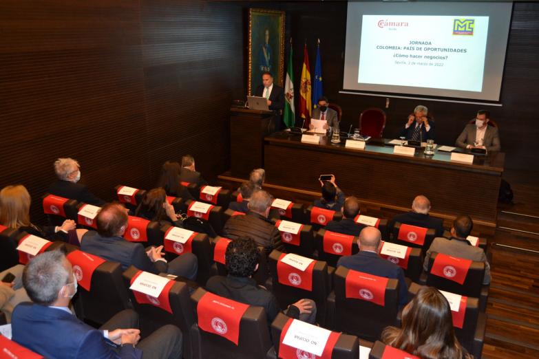El embajador de Colombia en España explica a empresarios sevillanos las oportunidades de negocio que ofrece su país