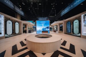 Todo ello tiene como escenario principal el stand de la firma (#W1029), ideado por el equipo propio de diseño de Cosentino bajo el concepto de Plaza Cosentino. Una propuesta abierta y con raíces mediterráneas en línea con el espacio presentado el año pasado, y que se alzó como el mejor stand del evento. Este año, la firma introduce nuevas propuestas como Cosentino Lab, una zona inmersiva que lleva al visitante a un viaje a través de la materia enfatizando el compromiso de Cosentino con la sostenibilidad, el alto rendimiento y el diseño transformador.