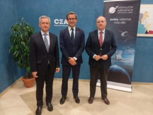 La sede de la Confederación de Empresarios de Andalucía (CEA) ha acogido la presentación de los datos del sector aeroespacial en Andalucía correspondiente a 2024. El Consejero de Industria, Energía y Minas de la Junta de Andalucía, Jorge Paradela, y el presidente del clúster Andalucía Aerospace, Antonio Gómez-Guillamón, han presentado este informe estadístico elaborado por el clúster aeroespacial y de defensa de Andalucía, con el apoyo de esta consejería.