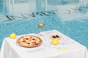 Creaciones concebidas para ser disfrutadas alrededor de la majestuosa piscina que preside el beach club como la pizza de salmón y caviar; la Insalata de calabacín a la parrilla y ricota o los langostinos croccanti y albahaca. No faltarán tampoco, los platos con una tremenda esencia mediterránea como el melón san Daniele con jamón de Parma y el ceviche de corvina e cornicello napoletano, o icónicos de la cocina italiana como los platos de pasta y risottos, destacando, los Fusilli alla nerano; los Cavatappi con mantequilla de caviar; la Lasagne bianche di Daniela o el Risotto de trufa.