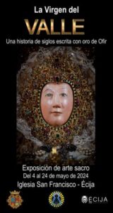 Écija se convertirá a partir del viernes 3 de mayo en epicentro cultural y referente para el arte sacro de la provincia de Sevilla. La Hermandad de Nuestra Señora del Valle de Écija inaugura el día 3 a las 19:00 horas en la iglesia de San Francisco la exposición ‘La Virgen del Valle. Una historia de siglos escrita con oro de Ofir’, organizada y producida por la hermandad y enmarcada en los actos del 25 aniversario de la Coronación Canónica de la Patrona y Alcaldesa Perpetua de Écija.