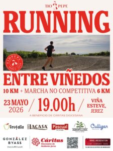 Ese mismo día, a las 19:00h, se celebrará en las Bodegas Tío Pepe, en Viña Esteve (Jerez de la Frontera, Cádiz), ‘Running y Marcha entre Viñedos’. La cita contará con la modalidad competitiva de 10 km, así como una marcha no competitiva de 6 km, pensada para todos los públicos. Todos los beneficios de las inscripciones serán destinados a Cáritas Diocesana, que desarrolla la acción social y caritativa de la Iglesia en la Diócesis. Además, se ofrece la posibilidad de participar mediante un dorsal solidario para quienes quieran colaborar sin competir en la carrera.