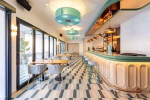 Esta envolvente de tonalidades marinas cobra vida y movimiento con un mobiliario ligero en tonos coral, terracota y salmón. El resultado es una atmósfera muy atractiva, que invita a los huéspedes a disfrutar de un nuevo concepto reinterpretado y actualizado de la ‘Dolce Vita’ ya sea en el solárium, junto a la barra o el amplio mirador con vistas directas al mar.