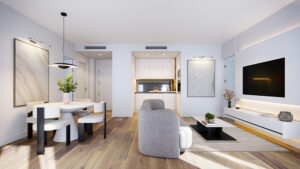 Las viviendas destacan por su diseño funcional y luminoso, con distribuciones abiertas, grandes ventanales de suelo a techo y una cuidada selección de materiales que aportan confort, calidez y serenidad a los espacios. El proyecto incorpora soluciones constructivas avanzadas como fachada ventilada, carpinterías de altas prestaciones, suelo radiante y refrescante, sistemas de aerotermia, ventilación mecánica y domótica, garantizando eficiencia energética, confort interior y un elevado nivel de calidad en cada detalle.