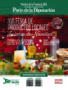 El patio de la Diputación de Sevilla acoge el sábado 21 de diciembre y el domingo 22, el segundo tramo de la XVI Feria de Productos Locales ‘Sabores de Navidad’, la última de las siete ferias dedicadas a productos agroalimentarios sevillanos organizadas por Prodetur, con la que se cierra, además, el calendario de eventos de la Muestra de la Provincia 2024.