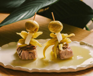 La propuesta se construye como un recorrido progresivo que enlaza el universo andaluz de Tragabuches con la tradición gallega de La Molinera. El menú arranca con una Gilda XL, homenaje al aperitivo clásico y al ritual de barra que abre el apetito, y continúa con quisquillas acompañadas de jugo de pimientos de Padrón. El tercer pase mira al sur con tomate de invierno y tartar de atún rojo de Almadraba.