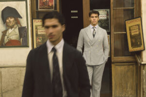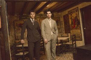 La colección está dominada por trajes de dos y tres piezas, confeccionados en linos y algodones premium que aportan ligereza y confort. La paleta cromática apuesta por tonos térreos y sobrios, elevando la sofisticación sin renunciar a la versatilidad. En cuanto a las siluetas, destacan las americanas cada vez más livianas y desestructuradas, acompañadas por un nuevo corte de pantalón wide fit que aporta modernidad al conjunto.