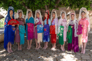 Los estilismos, en tonos rosas, turquesa, granate, celeste y rojo se han combinado con mantillas blancas, de color, en tono marfil y con madroños, además de peinetas, broches, mantones de Manila y abanicos. Los complementos son de Doña Sol y los mantones de Juan Foronda.