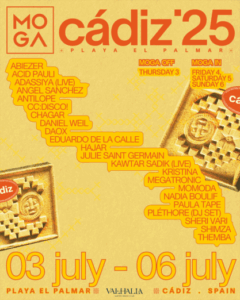 Este primer avance del line up de MOGA se completa con una vibrante mezcla de talento local español, artistas marroquíes y portugueses, y nombres internacionales que reflejan el espíritu del festival. Adassiya, Daox, Kawtar Sadik (Marruecos), Angel Sánchez, Eduardo de la Calle, Kristina, Nadia Boulif (España), Sherivari, Xinobi (Portugal) y Abierzer, CC:DISCO, Claudia Jiwu, Daniel Weil, Hajar Granja, Herman Priet, Giorgio De La Paz Megatronic, Momoda, Mr Chagar, Paula Tape, Penelope y Rolling Dynamite (resto del mundo). Si algo caracteriza a este proyecto es la lealtad de una comunidad internacional conocida como la Tribu MOGA. Una comunidad que explora valores de sostenibilidad y solidaridad, apostando por el descubrimiento personal a través de la música y de una serie de actividades que alimentan el espíritu.